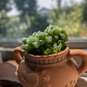 💠ハオルチア💠今日のお花💠 シンビフォルミス だと思っているのですが、詳しい方🤩違っていたら教えてください♪♬ 4月に、初めて蕾をつけ2️⃣花を咲かせました😍が、タイミングを逃し、撮影できず😅 子株が出てきています😘 月曜ですね、いい一日、いい一週間になりますように💖