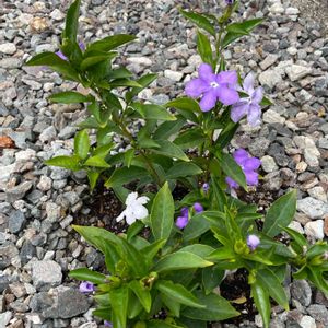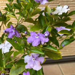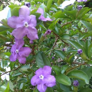 昨年より少し遅いですがニオイバンマツリの花が咲き始めました。😃💕 今年は葉っぱがいっぱい付いてたので切り戻しが遅くなったのですがそのあと10日位の間に若い芽がにょきにょきと出て来ました。 凄い生命力に力を貰っています。