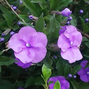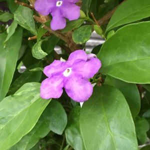 バンマツリ 色も素敵💕香りも良いです💕 ニオイバンマツリは、ナス科ブルンフェルシア属の常緑樹。初夏から夏にかけて花が咲く。漏斗状の花弁で5弁に開く。花は咲き始め濃い紫色で、次に薄い紫色、最後は白色になる。強い芳香がある。 葉は互生し革質で光沢がある。 和名の匂蕃茉莉は、匂があり、蕃からの、茉莉の意味で「香りのある外国からのジャスミン」を意味する。 ウィキペディアより 今日は朝から快晴! お掃除日和です。