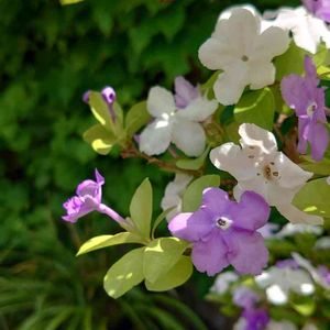 ニオイバンマツリ 咲き進むにつれ紫から白に変化する お花今は2色咲きのようになり綺麗です✨ 別名:ブルンフェルシア 和名:匂蕃茉莉 科名:ナス科 原産地:南アメリカ