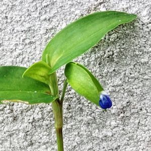 散歩コース 民家の壁に寄り添うように ツユクサがツボミを付けていました 明日には咲くかしら💙