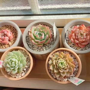 最近の植え替え♫ ①アマビレ お迎えしたまま放置してたらジュレた下葉が出没😧 慌てて植え替えして抜きました😮💨 消毒もしたし、このまま無事を祈ります🙏 ②オリビア 昨年のクリスマスイブに名前買い。 Olivia.N.J永遠に🤩 初ダイソー🎉 ③ピンクルルビー この子もオリビアと同時にお迎え♫ 昨年、pic投稿した1週間以内にジュレてバラバラになってしまい、リベンジです💪 ④ハオルチア バディア×スプレンデンス 先週末にHCのチャレンジコーナーみたいなところで激安価格でしたので、救出しました💪 ぷくぷくに元気になってほしい (*^_^*)