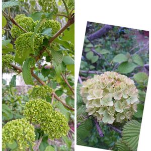 こちらは大手鞠(おおでまり)のお花😊 実は昨年枯れかかっていたので全滅覚悟で細い幹だけ残して根元近くからバッサリ切ったので咲いてくれてほっとしました😊🌿 まだまだ小さく拳大👊くらいですが 緑色から真っ白になり 手を大きく広げたくらい👋の大きさで存在感を増してくれる事を楽しみにしてます💓