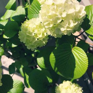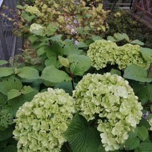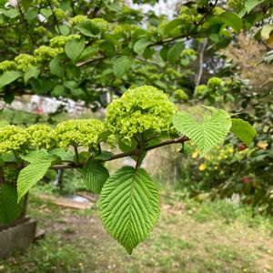 おはようございます👋😃 ・ ・ 昨日の花散歩🚶♀️。 公園の入り口。紫陽花⁉️と思ったら・・・。葉っぱをよく見たら、オオデマリですね🤗 ・ ・ 咲き始めはモスグリーンの爽やかな色💞咲き進むにつれて、白く変化するようです。大きな手鞠🎶