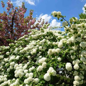 オオデマリがたくさん花をつけました☺️ 色の変化が好きなんです♪楽しみ~ 木もずいぶん大きく立派になりました💓