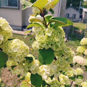 オオデマリ レンブクソウ科・ガマズミ属 ライムグリーンの紫陽花の様な花はやがて白い花へ変わります。