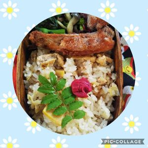 おはようございます コロナ禍 自粛の日々 ですが… 季節は移ろい… 新緑の季節🌱 筍ご飯 出来ました🍚 木の芽を添えて😊💕