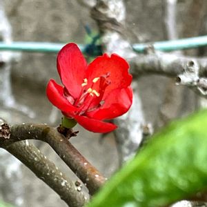 今日のお花 ボケの花 野鳥が蕾を食べてしまい 今年は 花びらが ガタガタの姿で 開花しています🌸😅