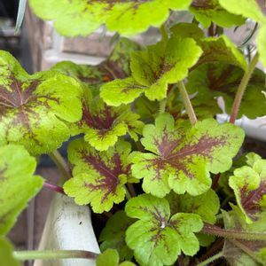 お気に入りのヒューケラモヒートサン💚 手前の大きな葉をめくると中には小さな葉が♡ もりもり大きくなってね💕