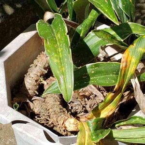庭に放置の鉢 これは、、、? 新芽が出てるので植え替えしてみようかな?