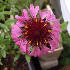 ガイラルディア ちゃんです。 とても、元気に、咲いてくれてます。 種採りしようと、咲いたお花も そのままなので、鉢の中が、大にぎわい😁
