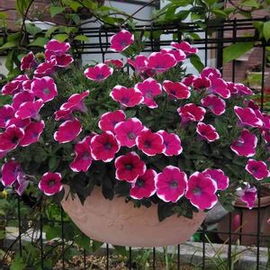 こんばんは😃🌃 薔薇レオナルドダ・ヴィンチと、サフィニア江戸しぼり❗️絵になります。😚