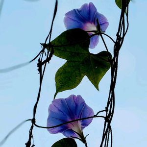 1⃣出勤前 2階まで伸びたアサガオに、やっと花が咲いた~💙💜 遅っ🤣💦 2️⃣帰宅後 ガイラルディア❤️ チビくん🐱 明日は休み🎶 多肉撮影ガンバろっ(,,>ლ<,,)www
