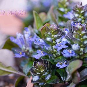 2週間程前にオリーブ🌿をひと回り大きな鉢に植え替えした際 同じ鉢に蕾のアジュガを2株🌱植えてたのですが かわいい花が咲き始めましたよ💙
