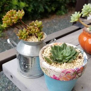 おはようございます🙆 昨日は、ハゲ散らかってしまった寄せ植えし直しました💦 久しぶりに多肉狩りして、GETしたコ、粉雪〜✨ (手前真ん中) 淡い色合いが好きです(⋆ᴗ͈ˬᴗ͈)” 今日は、仕事なので💦 頑張ってきます💦