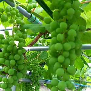 巨峰が色付いてきた🍇 我慢できなくて一粒味見… 美味しい🍇‼️ 甘くてジューシー❗️