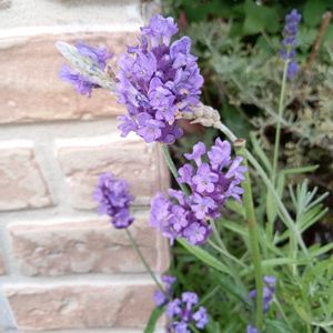今日のお花💜✨️(ラベンダー)✨️💜 ①②③④玄関アプローチにて暑い中、かろうじて咲いています、紫色が涼しげです✨️💜 ⑤夏野菜、フルーツ色々…買って来た物ですが、体力つけましょう〜✨️🍅🍇🍑🍎(*˘︶˘*).。*♡