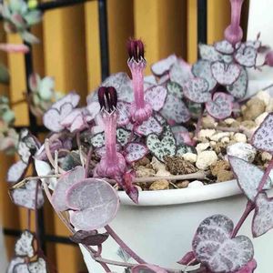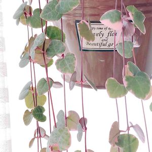 【キョウチクトウ科 ケロペギア属 ハートカズラ(斑入り)】 昨日は冬ごもりの準備を❄️ 簡易ビニール温室を組み立てて 多肉の鉢植えを移動しただけで 疲労度MAX(。>д<)