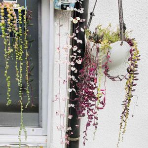 おはようございます☀ 朝からめちゃくちゃいいお天気です💦 今日はネックレスの日に参加しま〜す🤗 左は斑入りハートカズラちゃん💗 冬はほぼ消えてしまってましたが春になってここまでになってくれました👍 右はまゆゆちゃんに頂いたピーチネックレスちゃん🍑💞 凄い勢いでどんどん増えてます😆 ビスコ缶が狭くなって来たので秋にはもう少し大きな粉ミルクの缶に植え替え予定です😅