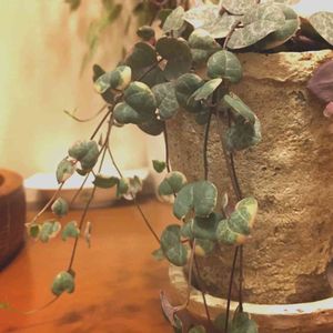 ただいま~\( ̄0 ̄)/💨💨 ハートカズラ。 まだまだ小さいけど 加湿器の傍にいるせいか、 めちゃくちゃ元気です♪
