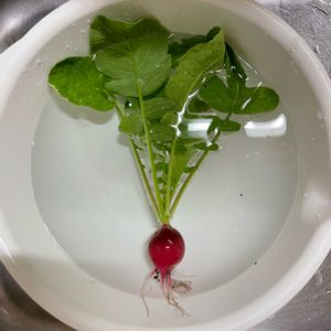 だいぶ水菜も大きくなりました。 無農薬でとってもみずみずしい✨ ラディッシュも試しに初収穫♪