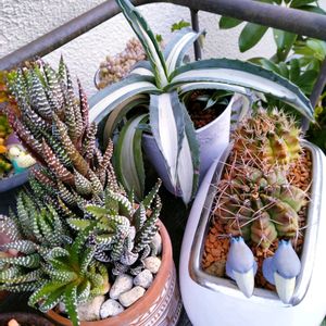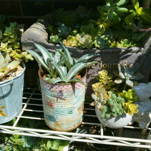 連日🏝️ですだ🥵 行くたびに 多肉ちゃんを1つづつ 持参しています💦 🏷アガベの日 🏷棘の日 ① 先日、連れて帰った 棘の無い😆アガベちゃん 横から見たらこんな感じ❣️ 手前のチビちゃんの 親株さんは 先日、古民家へ移動した ②の子です❣️