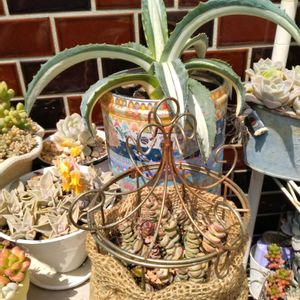 🏷ペコちゃん祭り 先程…蚊に刺されながら🤳🌟 今日は迷ってた ギューギューアガベ三兄弟の 植替えをしました✨️ 中が蒸れてて 危ないジュレ葉もあったので して良かったです🌿 まだまだ…続くよ手直しが…🌀 ① ランポーちゃんは昨年より 大きくなってる感じ✨️ ②③⑤ 今月は結婚記念日があるので このペコちゃんで参加😊