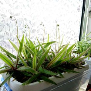 食虫植物 モウセンゴケ アデラエのお花が咲いた🌼 食虫植物のお花って可愛い( *´艸`)