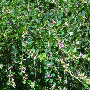 低山の山頂付近では「マルバハギ」が見られます。 枝は垂れず花も葉の外に飛び出ることありません。 また、楕円形の葉の先がわずかにへこんでいます。
