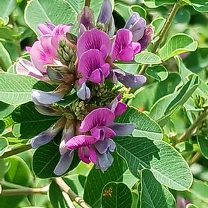 お稽古の帰り道、石垣の上に生えているマルバハギに花が咲いていました❗️ 上の方だったので、枝を引っ張って📷️✨