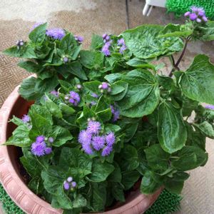 11/7 こぼれ種から育ったアゲラタム。9月まではハツユキカズラと同居、引越ししてからも順風満帆。 葉っぱが大きく、しかも茎がほとんどないおかげで、紫の花が隠れまくり。うっかり見過ごすと花が枯れてたりする💢 ようやっと、まともな長さの茎が出たぁ〜と思いきや(右側)、葉っぱも比例してデカイこと!でもって花がやっぱり隠れちゃう・・・💢