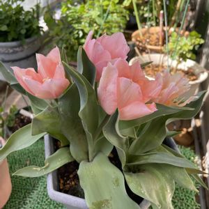 4/20 先週からチューリップ咲き出しました。アプリコットビューティー🌷優しい色です。風が強いので室内退避中❣️
