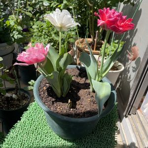 4/23 14日upの八重咲き混合🌷赤に続いて現れたのは白ピンク〜でした🥰