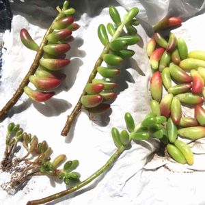 こんばんは🌇 この夏、虹の玉の挿し木☆になったので リベンジでラ○マで購入❗️抜き苗5株で購入したら…届いたのはこんな感じ😅 抜き苗だったら安心かなぁと思ったのに 半分葉が取れてかわいそうなぐらい😫 販売写真と全然違う😱 いくらポロポロ葉が取れやすいと言っても 配送中こんなにも取れないよねー 上の方はチョンパして挿し木にして、後は全部、葉挿しするしかないね(^_^;) 目指せ❗️虹の玉丼🎶