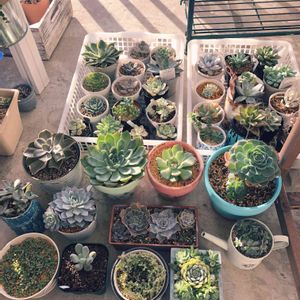 えっと6月一日picの多肉小鉢です。少しずつ入れ替えしながらの姿、三ヶ月超えていい感じ⁉️ 朧月がやっぱり早いですね成長…このまま止まらないかなあ、笑 挿そうと思う黒法師、水無し活け花が背景参加。🌱