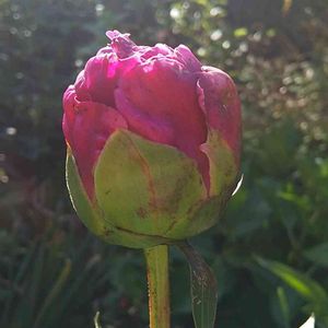 芍薬です😃 今年は全ての株に蕾がついています 一番先に開花しそうな蕾がこれ🥰 開きそうで、なかなか開かず お手伝いしたくなります🤭 連休中には開花宣言・・・かな?🤔 穏やかな1日の始まりです