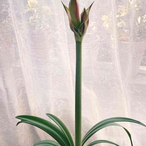 おはようございます “アマリリス” 開花❓にはもうちょっとかな 鉢下からの高さ70センチ 本当はこんなに小さな鉢で育つものではないんですね😅