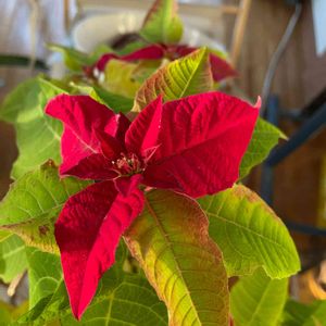 3年目のポインセチア クリスマスに真っ赤には中々なりません。