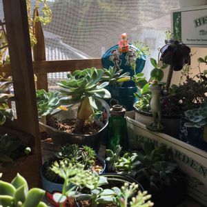 昨日、久々の太陽を浴びる多肉たち。 まぶしい(*˙꒳˙*)‧⁺✧* 枯れてるのもありますが、目をつぶってください。なんせ、初心者ですので。