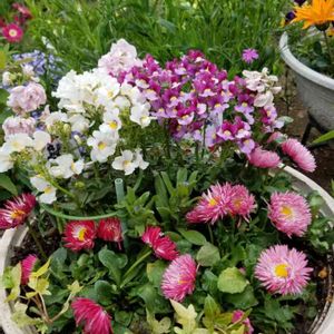 前picに続きまして… こちらがデージーの寄せ植えに…☺️ 出来たてホヤホヤ〜 湯気が♨🤭 この春… 春の寄せ植え第1号🥰🌸💮🏵️ デージーをメインに *ローダウンセマム アプリコットジャム エルフピンク *ルピナス ピクシーデライト (小型) *クモマグサ *ロータス クレティクス *アリッサム *ビオラ は 葉牡丹の寄せ植えを解体した中からチョイスを…😉 全体的にピンク系に… 可愛ぃ〜らしく🩷😍 作りたてでまだお花達が馴染んでませんが… 落ち着きましたら一ヶ月後位にまた投稿をさせて頂きます😌🙇