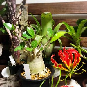 アデニウムくん💓 ようやっとヤル気を出してくれたようです😃✨ 寒さで痛んだ枝もありますが、新芽が出てくれたので、これからが楽しみでなりません☺️❤️ 初の冬越しでいろんな子を痛めつけてしまいました💦 次の冬は工夫しようと今からイメージしてます😁