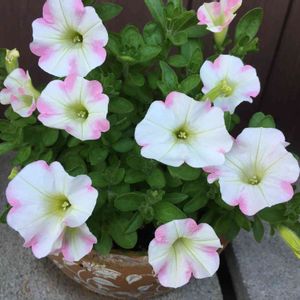 4/17にお迎えしたサントリーさんのサフィニアアート ももいろハート🌸🌸ですが、買った時はほとんど白くてピンクがほんの少しだけでしたが、やっと少しピンクのハートがみえてきました😅 これから大きなハートを付けて欲しいです💕💓💓