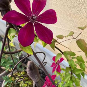 随分昔に購入したクレマチス𓂃𓈒𓏸 ずっと地植えしていましたが、お花が1つか2つ位しか咲かなくなってきまして😢思い切ってダメ元で去年の12月に鉢植えにしました😌 掘り上げてみた所、あまり根も張ってないようでした😥 ですが、3月の下旬か4月の頭当たりに芽が出始めて、4つも蕾を付けてくれました👏👏😆 クレマチスは移植を嫌うと言いますが、花が咲いてくれて一安心です😌