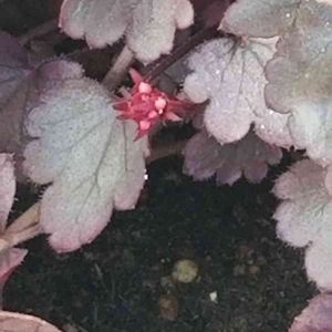 PWさんの『ヒューケラ・シルバーガムシロップ』さん 今朝ベランダにいるので見に行ったら 赤い小さな物体を発見ー‼️ 何だろうと思い見てたら それまで知らなかった『ヒューケラのお花』を想像しました どう見ても蕾にしか見えません (蕾という言い方が正しいのかな~) もし花が咲いたら嬉しくて投稿しますけど 花が咲かなかったらスルーしてこの投稿の事忘れて下さい(笑)