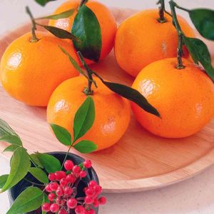昨日頂いた🍊 ツヤツヤとキレイなのでまだ食べる気にならない~甘いかしら?どうかしら? 友人のお母さんが焼いたぐい飲みに南天の葉っぱと別の木の実ものを飾りました♪