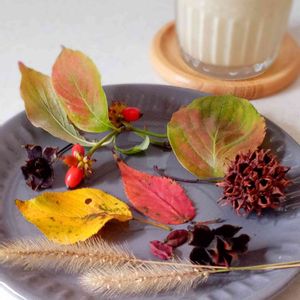 本日のランチ🧡秋のプレート🧡 バナナジュースを添えて… 朝の仕事の帰り道🚲️秋を見つけたので遊んでみました♪