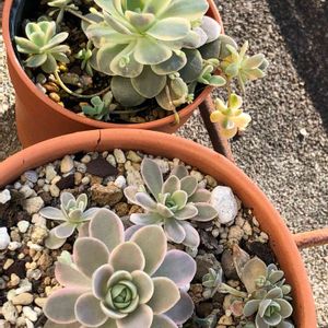 子持ち蓮華錦 手前の鉢は去年挿し芽してひと冬越し、今年もっと増えてくれるかな〜と思ってましたがさほどの勢いもないままで、秋に入ってようやく大きくなってくれたもの🍀 上のは保険として買っておいたもので、こちらはまた趣に差がありますが、どちらもかわいいことには変わりなし( ^ω^ ) 皆さんのようにわさわさになってほしいです💕