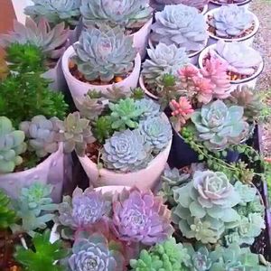 寄せ植えさんたち( *´艸`)💞 手前のローラさんも真ん中のほうからほんのりピンクに色づいています✨