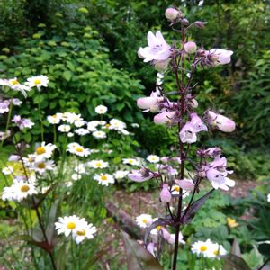 葉の色も素敵なペンステモン ハスカーレッドが咲いています🌿✨ 白いフランス菊と一緒のローメンテコーナー🤭