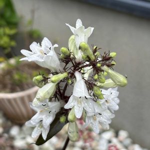 ペンステモンハスカーレッド 花言葉 あなたに見とれています 数あるペンステモンの品種の中でも 群を抜いて強健で暑さ寒さに強く こぼれ種でも殖えるそうです。 小さなお花ながらも群生すると 赤い葉や茎と白い花のコントラストが 美しく見応えがありました🥰